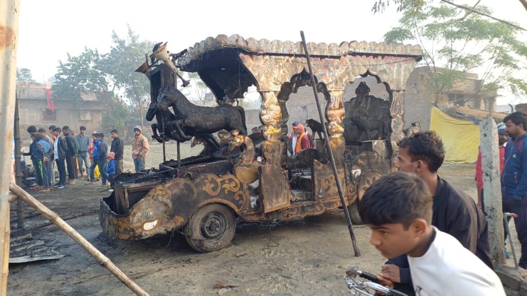 News4Bihar | सारण | मशरक नगर पंचायत क्षेत्र के दक्षिण टोला गांव में सोमवार की मध्य रात्रि में करकटनुमा दालान में आग लगने से 10 लाख रुपए से ज्यादा की संपति जलकर राख हो गई। पीड़ित दक्षिण टोला गांव निवासी लक्ष्मण राय हैं। पीड़ित ने बताया कि करकटनुमा दालान में उन्होंने शादी समारोह में जयमाला दुल्हा रथ , ड्रोन कैमरा, जनरेटर , कम्प्यूटर, एलसीडी टीवी समेत अन्य सामान रखा गया था। उसी के उपर से गुजर रहे बिजली तार में शार्ट सर्किट से आग लग गई। बताया गया कि उसी में सोये युवक रंजीत कुमार ने किसी तरह से जान बचाकर बाहर निकला। ग्रामीणों ने बताया कि ठंड की वजह से सभी लोग दुबके, चिल्लाने की आवाज पर सभी पहुंचे और कड़ी मशक्कत के बाद सभी ने आग पर काबू पाया। पीड़ित ने बताया कि 10 लाख रुपए से ज्यादा की संपत्ति जलकर राख हो गई है।