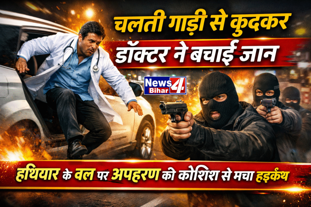 News4Bihar | सारण जिले में एक सनसनीखेज वारदात सामने आई है, जहाँ हथियार के बल पर एक डॉक्टर के अपहरण का प्रयास किया गया। इस दौरान डॉक्टर ने साहस दिखाते हुए चलती गाड़ी से कूदकर अपनी जान बचा ली।