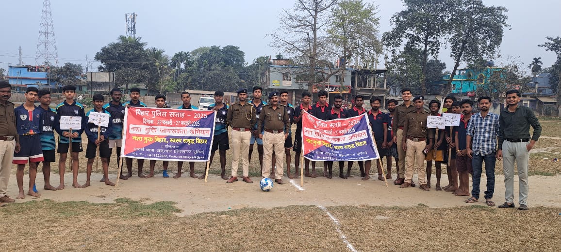 बिहार पुलिस सप्ताह के समापन पर ठाकुरगंज क्लब के खेल मैदान में दोस्ताना फुटबॉल मैच का आयोजन। February 27, 2025 No Comments Read More »
