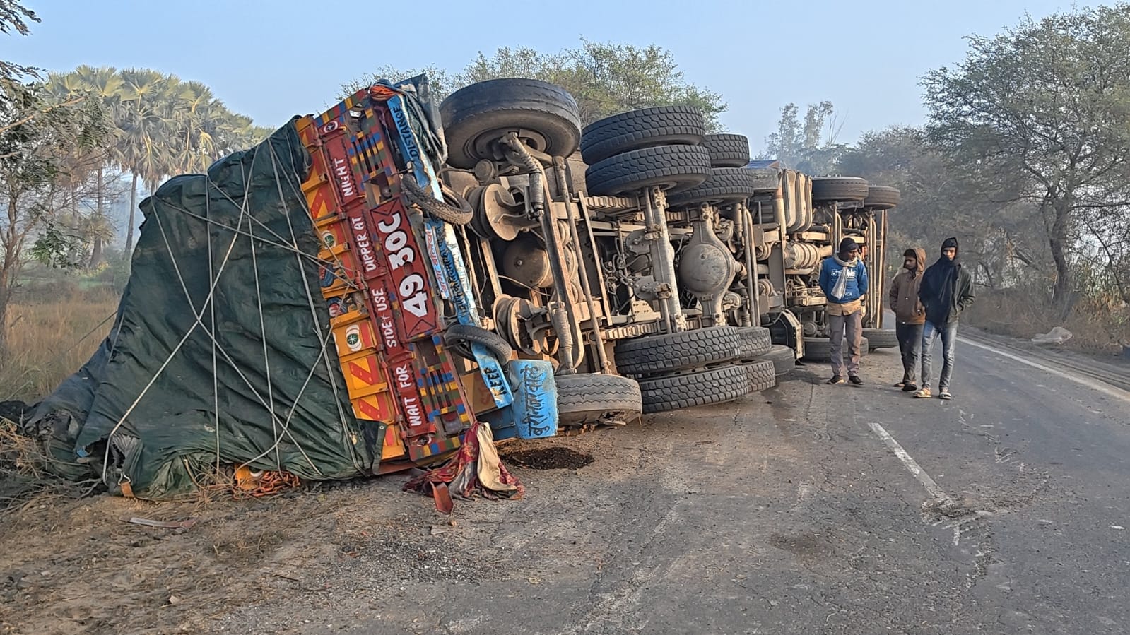 Breaking News Saran | कोयला लदा ट्रक NH-227A पर पलटा