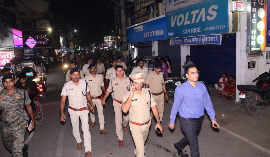 बिहार विधानसभा आम निर्वाचन 2025 को शांतिपूर्ण माहौल में संपन्न कराने के उद्देश्य से आज जिलाधिकारी एवं पुलिस अधीक्षक के नेतृत्व में फ्लैग मार्च निकाला गया।