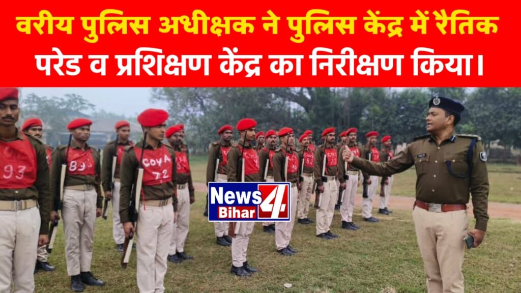 News4Bihar | आज दिनांक-19.12.25 को वरीय पुलिस अधीक्षक, सारण द्वारा पुलिस केंद्र, सारण में आयोजित रैतिक परेड एवं बुनियादी प्रशिक्षण केन्द्र, सारण का भौतिक निरीक्षण किया गया। इस अवसर पर वरीय पुलिस अधीक्षक महोदय ने परेड की सलामी ली और परेड में सम्मिलित पुलिसकर्मियों के पहनावे, अनुशासन, फिजिकल फिटनेस तथा परेड कौशल का विस्तृत निरीक्षण किया गया।