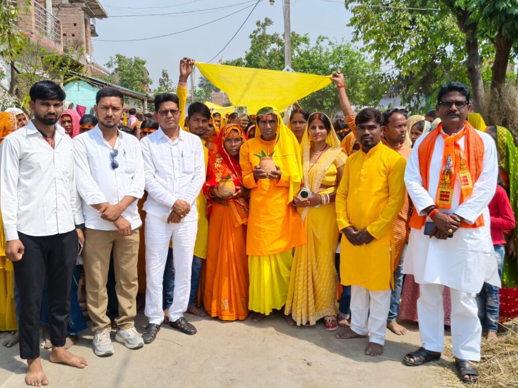 हजारों की संख्या में महिलाएं, कन्याएं और पुरुष श्रद्धालु सिर पर कलश लेकर “जय श्रीराम”, “हर-हर महादेव” और “जय बजरंगबली” के जयघोष करते हुए गांव की परिक्रमा करते हुए मंदिर परिसर पहुंचे।