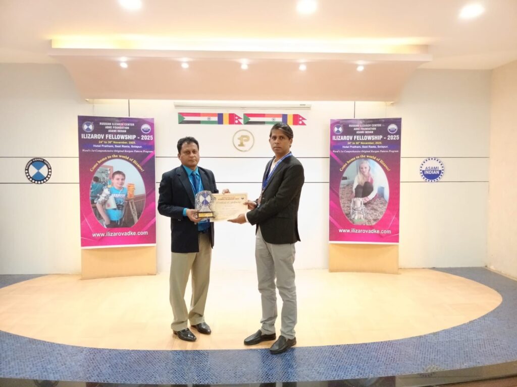 News4Bihar | इसुआपुर के लाल हड्डी एवं इस डॉ अमरेश कुमार को महाराष्ट्र मे अडके हॉस्पिटल सोलापुर में इलिजरोव तथा कास्मेटिक ऑर्थोपेडिक्स की ट्रेनिंग के उपरांत उन्हें सम्मानित किया गया।एशिया प्रसिद्ध सर्जन डॉ संदीप अड़के के द्धारा उन्हें मैडल तथा सर्टिफिकेट देकर सम्मानित किया गया. इस बाबा डॉक्टर अमरेश ने बताया कि पूरे भारतवर्ष से 25 डॉक्टर को चुना जाता है तथा उन्हें इस विषय में ट्रेनिंग दी जाती है यह सम्मान मिलने से उन्हें काफी खुशी हुई है उनके उन्हें सम्मानित किए जाने पर तरैया विधायक जनक सिंह ,पूर्व प्रत्याशी शैलेन्द्र प्रताप सिंह, पूर्व विधायक मुद्रिका प्रसाद राय ,प्रमुख मितेंद्र प्रसाद यादव, मुखिया धनंजय पांडे, अजमल रहमानी, अजय राय,राजीव रंजन सिंह गुनु, मुखिया प्रतिनिधि अजय शाह, पन्नालाल राय, दीनदयाल राय, पूर्व मुखिया सुनिल चौरसिया, अरविंद चौरसिया, मनोज राय, डॉ ददन सिंह कुशवाहा पैक्स अध्यक्ष जितेंद्र सिंह कुशवाहा आदि ने उन्हें सुभकामना दी है।